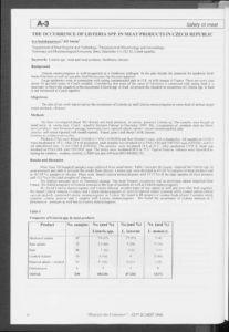 The occurence of Listeria spp. in meat products in Czech republic The occurence of Listeria spp. in meat products in Czech republic I. Steinhauserava and. J. Smola