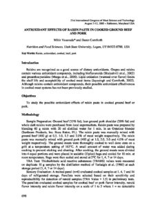Antioxidant effects of raisin paste in cooked ground beef and pork Antioxidant effects of raisin paste in cooked ground beef and pork M. Vasavada and D. Cornforth