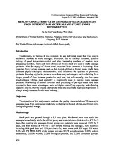 Quality characteristics of Chinese-style sausages made from different raw materials and stored under refrigeration