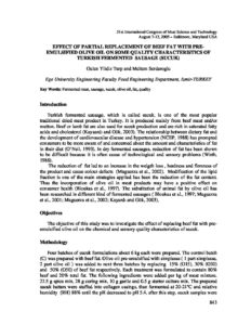 Effect of partial replacement of beef fat with pre-emulsified olive oil on some quality characteristics of turkish fermented sausage (sucuk)