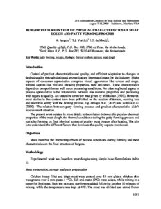 Burger texture in view of physical characteristics of meat dough and patty forming process