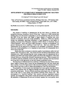 Development of an injectable “modified marbling” solution for whole muscle beef cuts