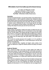 Differentiation of pork from healthy pig and the diseased dead pig Differentiation of pork from healthy pig and the diseased dead pig M. T. Chen, T. M. Weng, and C. B. Tseng