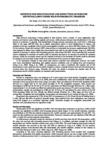 Kinetics for denaturation and reduction of porcine metmyoglobin under high hydrosratic pressure