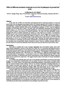 Effect of different marinade treatments on survival of pathogens in ground beef jerky Effect of different marinade treatments on survival of pathogens in ground beef jerky S. Khurana and A.D. Clarke