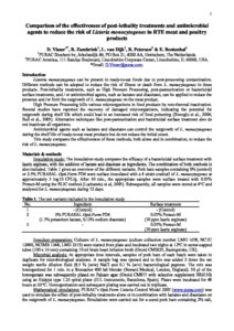 Comparison of the effectiveness of post-lethality treatments and antimicrobial agents to reduce the risk of Listeria monocytogenes in RTE meat and poultry products