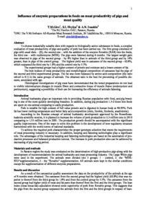 Influence of enzymic preparations in feeds on meat productivity of pigs and meat quality