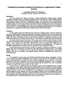 Validating developmental modeling for interactions in a supplementary feeding program Validating developmental modeling for interactions in a supplementary feeding program L. Basu and H.W. Ockerman