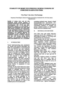 Stability of berry polyphenols during cooking of enriched marinated pork Stability of berry polyphenols during cooking of enriched marinated pork Tõnu Püssa; Dea Anton; Piret Raudsepp;