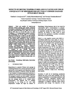 Effects of drying temperatures and fat levels on yield and quality of reformed ready-to-eat Chinese sausage style meat snack