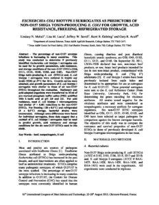 Esherichia coli biotype I surrogates as predictors of non-O157 shiga toxin-producing E. coli for growth, acid resistance, freezing, refrigerated storage