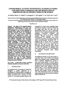 Antimicrobial activity of potential starter cultures towards food pathogens for the production of fermented meats without nitrate or nitrite
