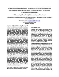 Wheat germ oil enrichment with alpha-lipoic acid in broiler: advanced approach to develop functional meat to combat hypercholesterolemia