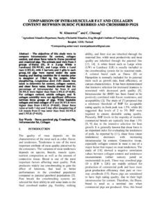 Comparison of intramuscular fat and collagen content between Duroc purebred and crossbred pigs Comparison of intramuscular fat and collagen content between Duroc purebred and crossbred pigs W. Kheawrod and C. Chaosap
