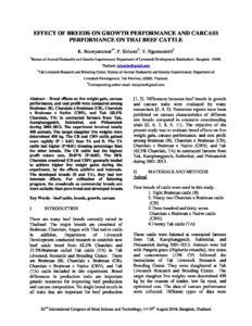 Effect of breeds on growth performance and carcass performance on Thai beef cattle