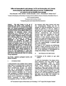 Effect of atmospheric cold plasma (ACP) on Escherichia coli, Listeria monocytogenes and Salmonella enterica serovar typhimurium on ready-to-eat mortadella-type sausage