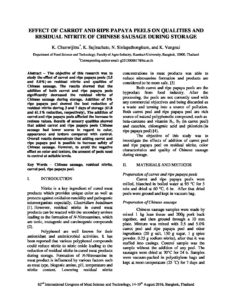 Effect of carrot and ripe papaya peels on qualities and residual nitrite of chinese sausage during storage