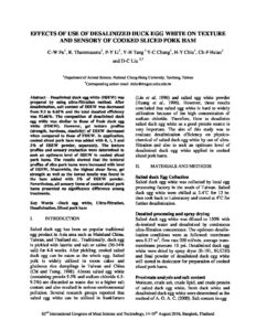 Effects of use of desalinized duck egg white on texture and sensory of cooked sliced pork ham