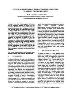 Effect of ginger leaf extract on the oxidative stability of chicken oils Effect of ginger leaf extract on the oxidative stability of chicken oils Y. J. Wu, M. C. Chen, D. C. Liu and F. J. Tan