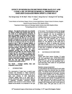 Effect of mixing ratio between pork back fat and canola oil on physicochemical properties of emulsion sausages from spent layer meat