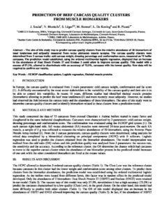 Prediction of beef carcass quality clusters from muscle biomarkers